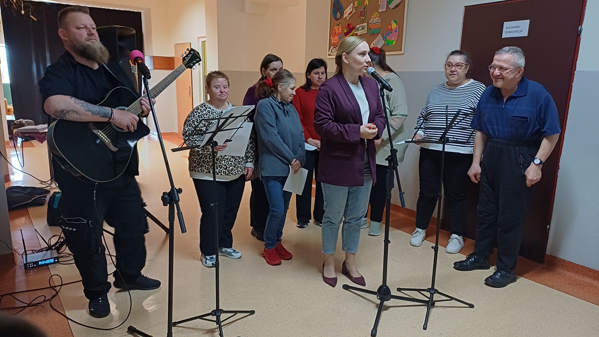 9 kwietnia 2026 r. mieliśmy przyjemność gościć w naszym Domu kadrę oraz uczestników Środowiskowego Domu Samopomocy w Nowej Wsi k. Kozienic. Spotkanie odbyło się w ramach projektu „Zarażeni Muzyką” – obejmującego występy oraz spotkania integracyjne w różnych placówkach.